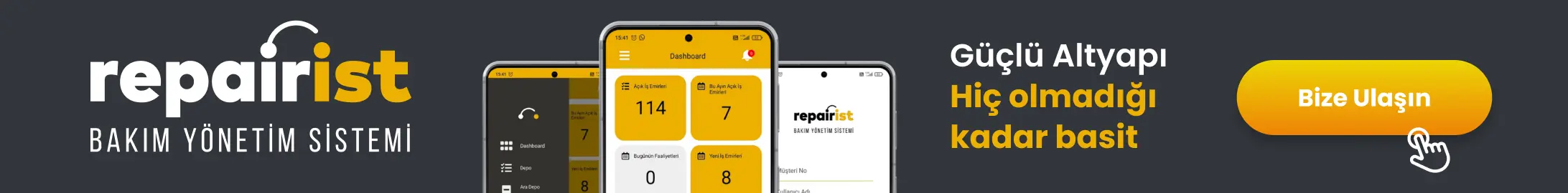 repairist, size yardımcı olmak için burada. Bakım Yönetim Sistemi hakkındaki sorularınızı yanıtlayabilir aynı zamanda yazılımın temel özellikleri ve faydaları hakkında bilgi verebilir, repairist demosuna ulaşmanıza ve hatta ücretsiz bir deneme almanıza yardımcı olabiliriz. Aybit Teknoloji